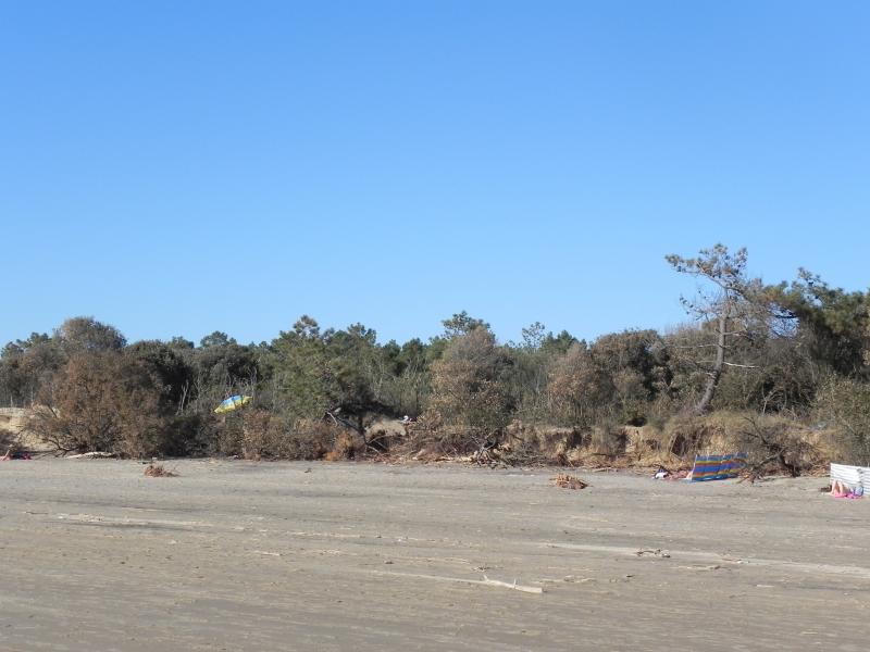 la dune a reculée de 10 m les arbres sont tombés sur la plage