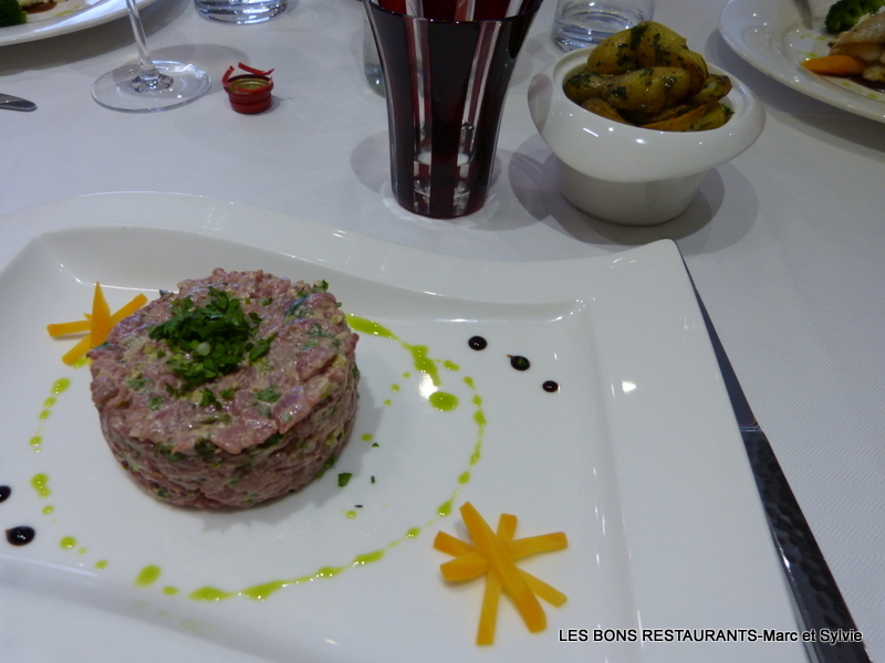 Les amateurs de tartare ne seront pas déçus! Cette assiette est accompagnée de salade et de pommes ratte.