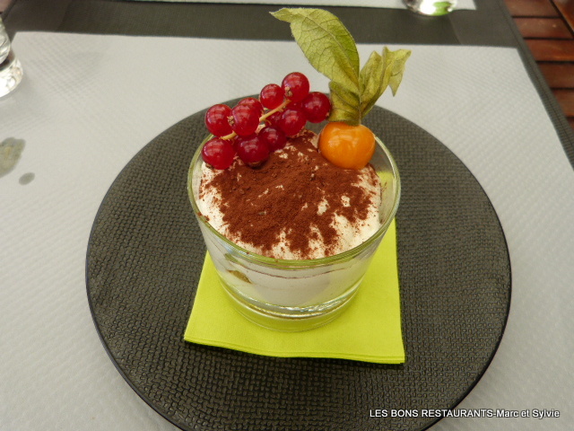 Le dessert est gourmand, Marc a choisi un tiramisu maison au café!