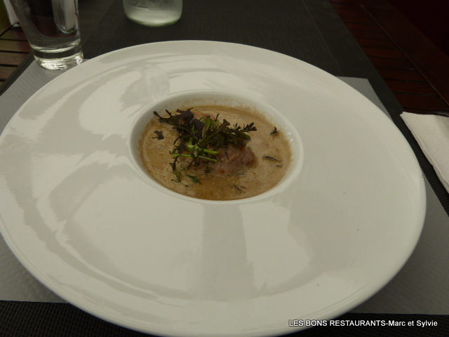 En entrée, Marc choisit le riz de veau accompagné de trompettes de la mort.