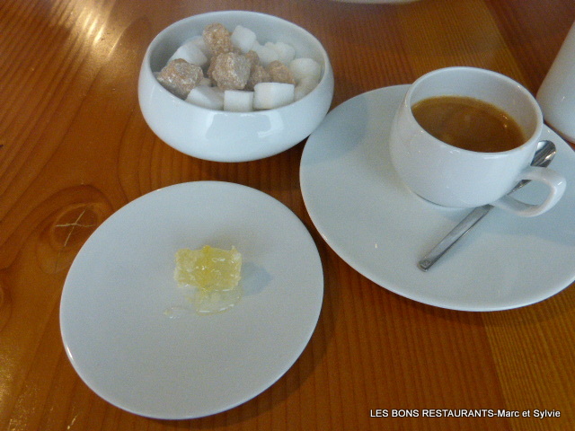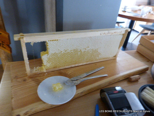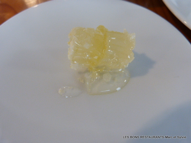Un petit morceau de miel directement pris d'une grille des ruches du restaurant!