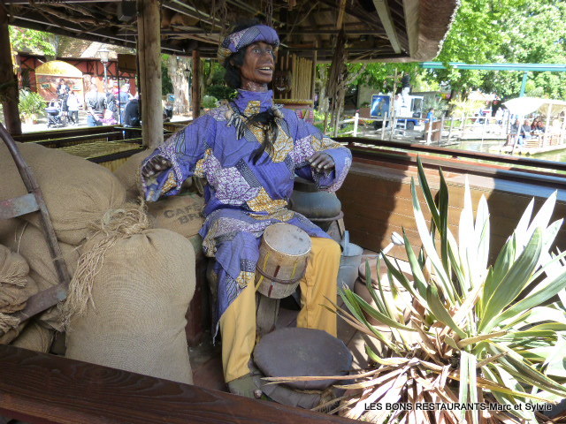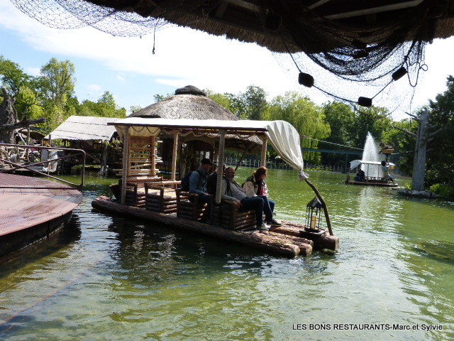 Le radeau de la jungle est une attraction où des radeaux évoluent en suivant un circuit aménagé d'animatroniques dans un décor de village de pêcheurs d'Afrique.