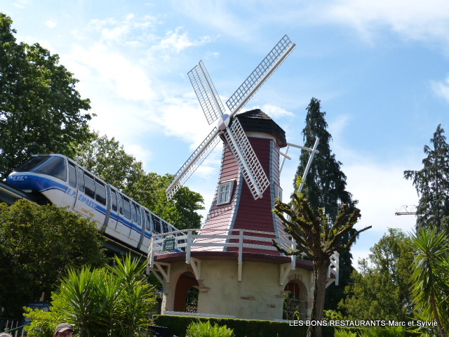 Le monorail qui passe près d'un moulin....surtout ne le ratez pas! Ce train panoramique vous emmène d'un quartier à un autre en quelques minutes seulement!