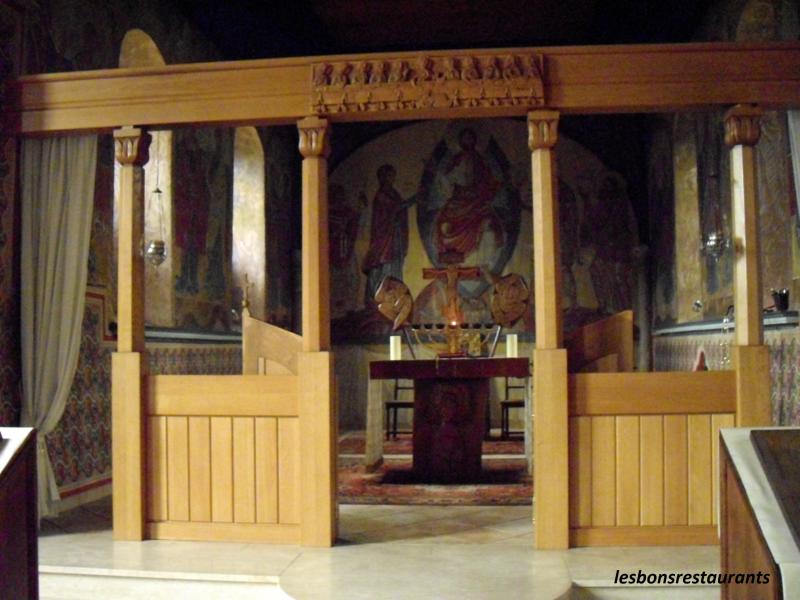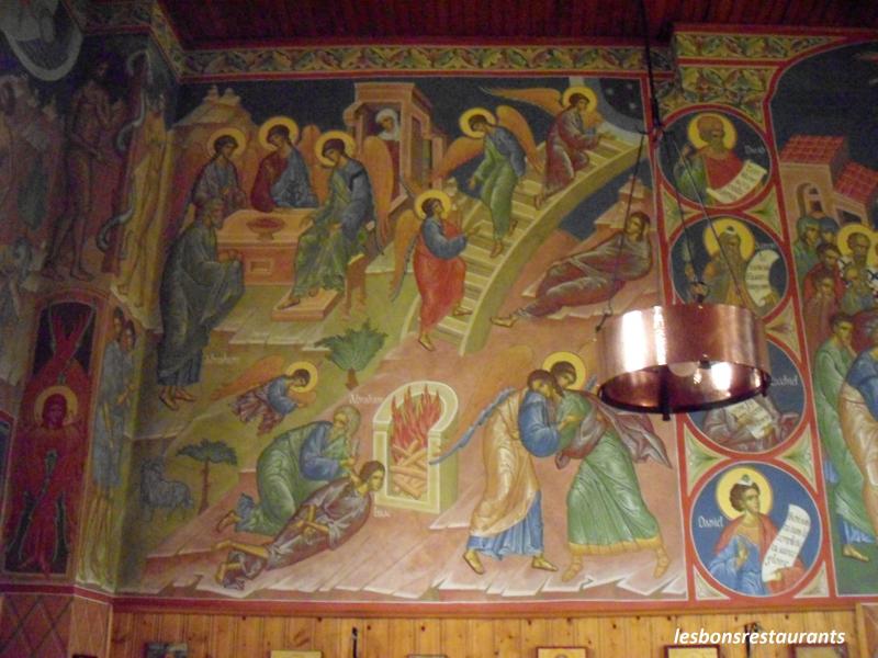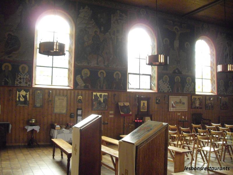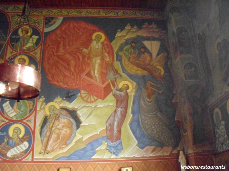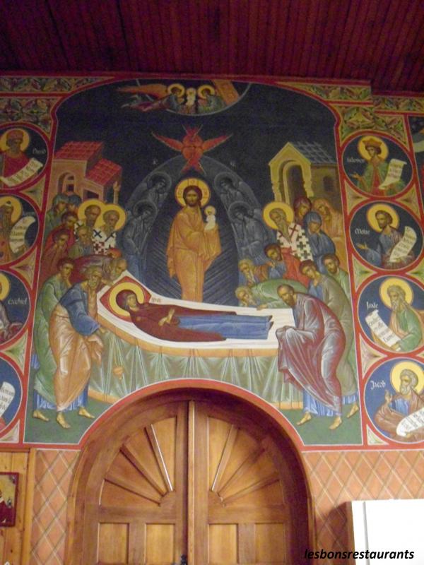 Des fresques de style byzantin ornent les murs de cette chapelle.