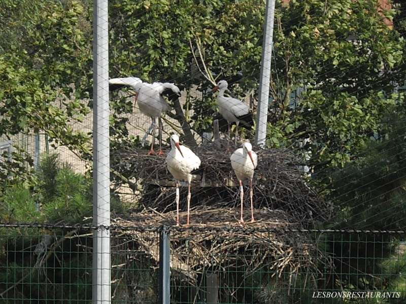Dans l'enclos, les cigognes vivent et s'alimentent dans une enceinte protégée des prédateurs.