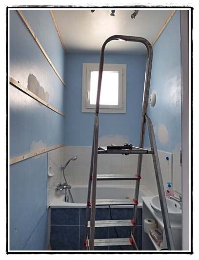 A Royan, nous avons une deuxième petite salle de bains qui avait besoin d'être rénovée. C'est la seule pièce de la maison que les anciens propriétaires n'avaient pas terminée.