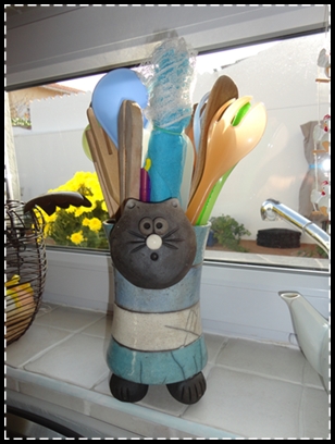 Je reprends le cours de mon blog et dans l'article "Marché des Potiers à Mornac/Seudre", je vous ai raconté que je m'étais acheté un pot à cuillères pour ma nouvelle cuisine. Je vous laissais deviner le motif.... et bien, le voilà!