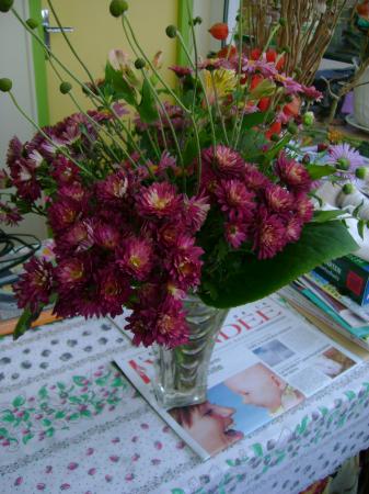 ILs étaient pourtant bien beaux.chaque année les asters font le régal de tous mes amis(es) j'ai diverses variètés :des nains et des géants(en effet ils sont très hauts.De diffrents coloris:des bleus,des roses,des blancs,et les fleurs tiennent à peu près deux semaines en vase ,ce qui est appréciable.Avoir unjoli bouquet :moi j'adore!!!Malheureusement la pluie des ces derniers jours les a malmenés,et il va bien falloir se résoudre à les couper.Mais l'espoir fait vivre,n'est ce pas,et l'an prochain j'aurai le plaisir de les revoir fleurir.bien sûr,si Dieu me prête vie ah!ah!ah!!!