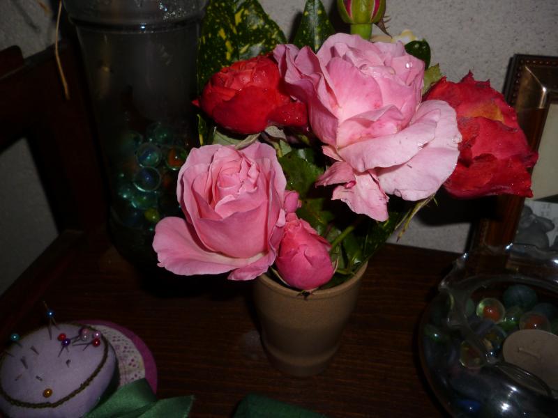 j'ai coupé les derniers boutons de roses et je peux profiter d'un joli bouquet.quant aux asters ; nains et géants ils sont fanés et je les ai coupé.les jardinières de géraniums (boutures) sont à l'abri?Et bientôt je vais couper les fuschias et oeastromer les recouvrir de feuilles sèches et d'un voile d'hivernage.