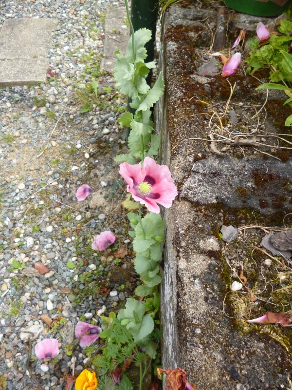 oui il y a beaucoup de jeunes pousses de mauvaise herbes dans les allées,et je ne suis guère adèpte des déserbant chimique,alors armée de courage j'ai enlevé ces "vilaines herbes" à la main.Et ensuite arrosé avec de l'eau chaude salée.On verra bien!! pour le moment c'est concluant ,tou n'est pas terminé mais il y a un coin de propre,jugez en?