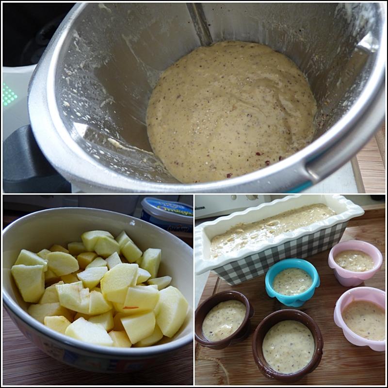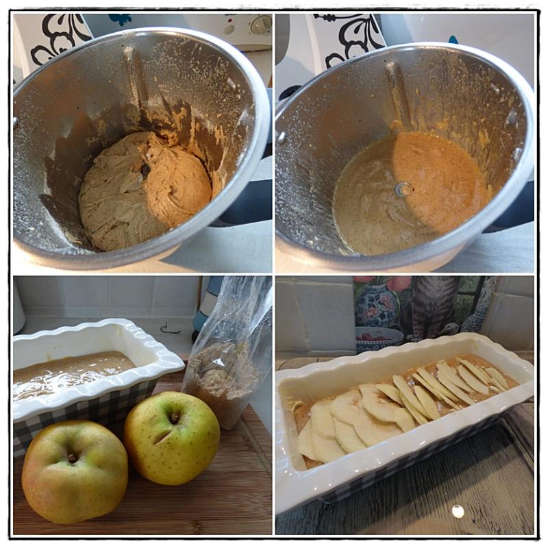 | Coucou, c'est moi! je viens vous souhaiter un bon dimanche avec cette recette que j'ai trouvée sur le très joli blog de "La cuisine de Lilly".  Les ingrédients : - 3 oeufs - 1 yaourt nature (maison pour moi) - 60g de sucre de canne ou cassonade - 180g de farine - 100g de beurre fondu - 1 sachet de levure chimique - 2 pommes - 100g de pépites de chocolat La recette avec Thermomix : 1 - Mettre le beurre dans le bol et le faire fondre 2 minutes, 60°, vitesse 1. 2 - Ajouter le yaourt et les oeufs et programmer 1 minute, vitesse 5. 3 - Ajouter le sucre et programmer 1 minute, vitesse 5. 4 - Ajouter la farine et la levure. Programmer 1 minute, vitesse 4. La pâte est fluide. 5 - Eplucher les pommes. Les couper en morceaux.  6 - Les ajouter à la pâte ainsi que les pépites de chocolat. Programmer 30 secondes, sens inverse, vitesse 3 pour tout mélanger délicatement. 7 - Verser dans un moule à cake beurré et enfourner environ 50 minutes à 180°. Recette sans Thermomix : 1 - Casser les oeufs dans un saladier, ajouter le yaourt et le beurre fondu et mélanger au fouet. 2 - Ajouter le sucre et mélanger. Puis ajouter la farine et la levure chimique. 3 - Eplucher les pommes. Les couper en morceaux. 4 - Les ajouter à la pâte ainsi que les pépites de chocolat. Mélanger délicatement. 5 - Verser dans un moule à cake beurré et enfourner environ 50 minutes à 180°. Moelleux à souhait! une "tuerie" avec notre café.... Pour d'autres recettes réalisées au Thermomix, suivez ce LIEN.   |