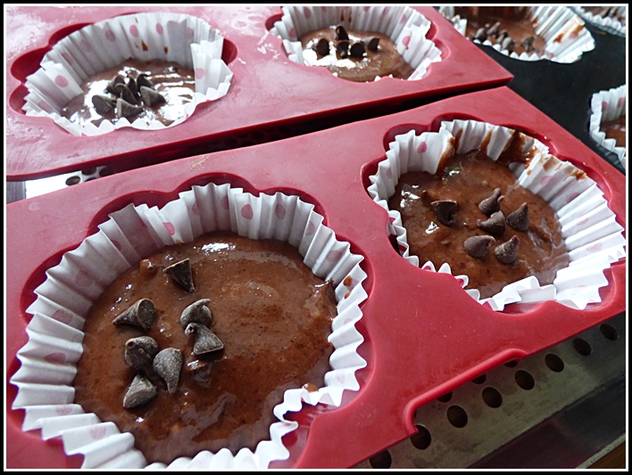 Pour fêter l'arrivée du printemps et du renouveau, je me suis offert ce nouveau moule, acheté chez Lidl. La couleur "pétante" m'a beaucoup plu! Inutile de vous dire que j'ai été impatiente de le tester... J'ai donc réalisé des muffins aux pépites de chocolat maison dans mon thermomix. Les ingrédients : - 80g de chocolat noir - 115g de farine - 1 oeuf - 60g de lait - 30g de sucre roux - 1/2 sachet de levure chimique - 1/2 cuillère à café de bicarbonate de soude de cuisine - 10g de beurre La recette : 1 - Préchauffer le four à 180°. 2 - Mettre le chocolat coupé en morceaux dans le bol du thermomix et mixer 10 secondes, vitesse 4. On obtient de jolies pépites de chocolat. Plus besoin d'en acheter dans le commerce! Les réserver. 3 - Dans le bol non lavé, mettre tous les ingrédients et mélanger 15 secondes, vitesse 4. 4 - Ajouter les pépites et mélanger sens inverse, 5 secondes.    5 - Remplir les empreintes et enfourner pour une vingtaine de minutes. 6 - Démouler les muffins et les saupoudrer de sucre glace pour "faire beau". Le printemps arrive....   Recette sans thermomix : 1 - Préchauffer le four à 180°. 2 - Couper le chocolat avec un couteau ou utiliser des pépites de chocolat du commerce. Les réserver. 3- Dans un saladier, mélanger tous les ingrédients. Ajouter les pépites de chocolat. 4 - Remplir les empreintes à muffins et faire cuire une vingtaine de minutes. 5 - Démouler et saupoudrer les muffins de sucre glace.   |