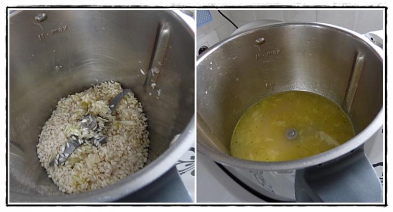 | Je partage avec vous cette recette que j'ai trouvée dans le magazine "Saveurs Thermomix". Je vous conseille d'utiliser un riz spécial risotto comme le riz "arborio" qui a une haute teneur en amidon. En le cuisant dans le Thermomix le riz relâche progressivement son amidon et donne au plat une texture crémeuse et onctueuse. Les ingrédients : - 1 oignon - 20g de beurre - 25g d'huile d'olive - 1 barquette de champignons de Paris - 1 courgette - 250g de riz arborio - 50g de vin blanc de cuisine - 600g d'eau - 1 bouillon cube volaille - des pignons de pin - sel et poivre du moulin - parmesan ou gruyère râpé   1 - Si vous avez un morceau de parmesan à râper... le mettre dans le bol, le râper 10 secondes, vitesse 10. Le réserver dans un bol.  2 - Mettre l’oignon dans le bol, le mixer 5 secondes, vitesse 5. Racler les bords avec la spatule. 3 - Ajouter le beurre et l’huile d’olive, faire rissoler 5 minutes, 120°, vitesse 1, sans le gobelet doseur. 4 - Ajouter le riz à risotto, faire rissoler 3 minutes, 120°, vitesse 1, sans le gobelet doseur. 5 - Ajouter le vin blanc sec, faire cuire 2 minutes, 100°, vitesse 1, sans le gobelet doseur. 6 - Ajouter l’eau, le cube de bouillon de volaille, du sel (très peu si vous utilisez du bouillon déshydraté) et du poivre. Selon la variété de riz, faire cuire 16-18 minutes, 100°, vitesse 1, sans le gobelet doseur. Mettre le panier cuisson à la place, pour éviter les projections si nécessaire. 7 - Pendant la cuisson du riz, nettoyer les champignons. Les saisir 2 à 3 minutes sur feu vif dans une poêle pour les faire dégorger. Quand toute l'eau est évaporée, ajouter la courgette coupée en dés et les pignons de pin ainsi que le beurre. Saler, poivrer et garder au chaud. Il aurait été possible d'ajouter la courgette et les champignons dans le Thermomix pour qu'ils cuisent en même temps que le riz mais je préfère que les morceaux soient intacts, c'est plus joli pour la présentation et aussi au goût. 8 - A la fin de la cuisson du risotto, le verser dans la poêle et mélanger délicatement le tout. Vous pouvez aussi à ce moment-là ajouter le parmesan et un peu de crème. 9 - Utiliser un cercle de présentation pour que ce soit plus joli! Déposer quelques pluches de persil sur le risotto. Pour d'autres recettes réalisées au Thermomix, suivez ce LIEN.   |