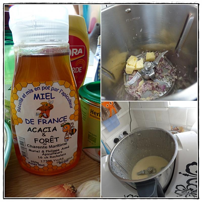 | J'ai voulu sortir des sentiers battus et ne pas préparer ce chou-fleur gratiné à la béchamel comme je le fais très souvent. Je l'ai accompagné d'une sauce soubise préparé au Thermomix. C'est une sauce à base d'oignons mais pourquoi porte-t-elle ce nom? Vous le savez? Et bien moi, non.. alors je me suis renseignée et j'ai appris qu'elle devait son nom au Prince de Soubise. Brillant militaire, il était aussi un gastronome qui aimait non seulement bien manger mais aussi faire la cuisine : cette activité était alors élégante et bien vue à la Cour sous le règne de Louis XV. Ce serait donc lui qui aurait inventé un jour une sauce à base d’oignons qui fit sa gloire. Mais il semble plus vraisemblable que ce soit Constant, qui était le chef cuisinier de la maison de Soubise qui a créé cette recette que son patron s’est ensuite appropriée. Les ingrédients : - 1 chou-fleur - 200g d'oignons - 80g de beurre - 100g de vin blanc de cuisine - 500g d'eau - 50g de farine - 1 pincée de noix de muscade - sel et poivre du moulin - 4 oeufs - gruyère râpé   1 - Nettoyer le chou-fleur et le cuire à la vapeur. J'ai réalisé cette opération dans mon Cookéo. Ranger les bouquets dans un plat à gratin. 2 - Préparer 4 oeufs durs. Je réalise aussi cette opération dans mon Cookéo. C'est ICI. 2 - Préparation de la sauce : mettre les oignons dans le bol et hacher 5 secondes, vitesse 5. Racler les parois du bol à l'aide de la spatule. Remarque : comme je n'avais pas assez d'oignons jaunes, j'ai ajouté un oignon rouge. 3 - Ajouter 30 g de beurre et rissoler 5 minutes, 90°, vitesse 1, sans le gobelet doseur. 4 - Ajouter le vin blanc et cuire 10 minutes, 100°, vitesse 1. 5 - Ajouter le reste de beurre, l'eau, la farine, la muscade, le sel et le poivre, et cuire 5 minutes, 90°, vitesse 3.  6 - Couper les oeufs durs et les répartir sur les bouquets de chou-fleur. 7 - Répartir la sauce soubise sur le chou-fleur et parsemer de gruyère râpé.    8 - Enfourner sous le gril du four. Cette sauce peut aussi accompagner un rôti de veau, des oeufs durs ou des légumes. Elle est excellente. Pour d'autres recettes réalisées au Thermomix, suivez ce LIEN.   |