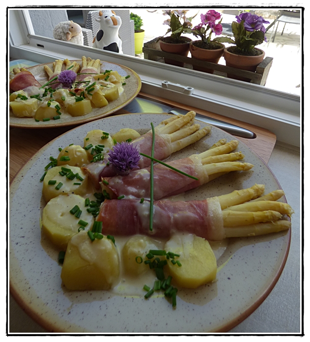 Rien de plus simple et de rapide.... une recette très appréciée des enfants mais aussi des grands! J'ai préparé la purée dans mon Thermomix.  Les ingrédients : - 1 kg de pommes de terre à purée - 350g de lait - sel et poivre du moulin - 4 tranches de jambon cuit - gruyère râpé - 50g de beurre La recette : 1 - Eplucher les pommes de terre et les couper en morceaux. Insérer le fouet dans le bol. 2 - Mettre les dés de pommes de terre dans le bol avec le lait et le sel. 3 - Cuire 24 minutes, sens inverse, 100°, vitesse 1 en enlevant le gobelet du couvercle. 4 - A la sonnerie, enlever le sens inverse. Ajouter le beurre et mixer 40 secondes, vitesse 3.   5 - Déposer la purée sur chaque tranche de jambon cuit et rouler chaque tranche.  6 - Les déposer côte-à-côte dans un plat beurré allant au four. Répartir le reste de la purée dans le plat, recouvrir de gruyère râpé et passer au grill quelques minutes. 7 - Déguster ces roulades avec quelques feuilles de salade verte. La purée au Thermomix est délicieuse. Elle a une bonne consistance pour préparer ces roulades que vous pouvez réaliser aussi avec une purée de carottes ou bien une fondue de poireaux, .... Je vous laisse innover et vous souhaite bon appétit! Bien sûr, vous pouvez réaliser cette recette sans Thermomix.... vous préparez votre purée traditionnellement. Je ne vous donne pas la recette.... tout le monde sait faire!!!!   |