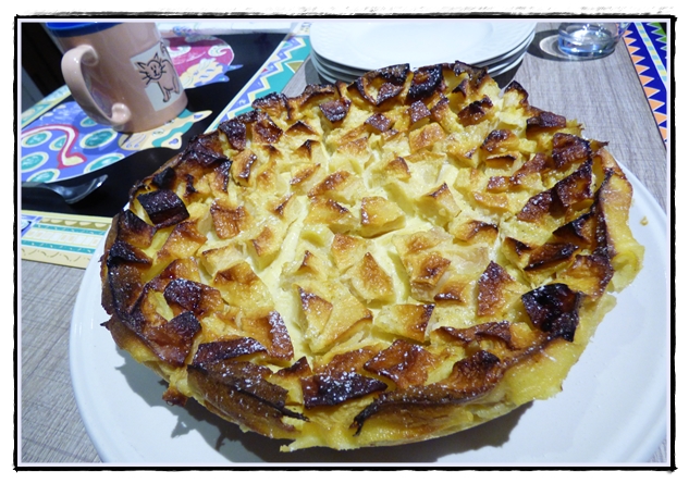 | Je me suis inspirée de la recette de far aux pruneaux qui est ICI pour réaliser un autre far avec des abricots, fruits de saison.  Les ingrédients : - 300g d'abricots dénoyautés - 80g de sucre fin - 120g de farine - 4 oeufs - quelques gouttes d'arôme d'amande amère - 500g de lait - 1 pincée de sel - 20g de beurre (facultatif si vous utilisez un moule en silicone). La recette : 1 - Préchauffer le four à 180° (Th 6). Dénoyauter les abricots. Réserver. 2 - Dans le bol, mettre tous les ingrédients et programmer 1 minute, vitesse 4. 3 - Beurrer un moule à manqué. Y verser la préparation. 4 - Disposer les abricots sur la pâte. 5 - Cuire au four environ 50 minutes. Vérifier la cuisson avec la lame d'un couteau, elle doit ressortir propre. Mon conseil : la prochaine fois, je remplacerai l'arôme d'amande amère par de la poudre d'amandes. |