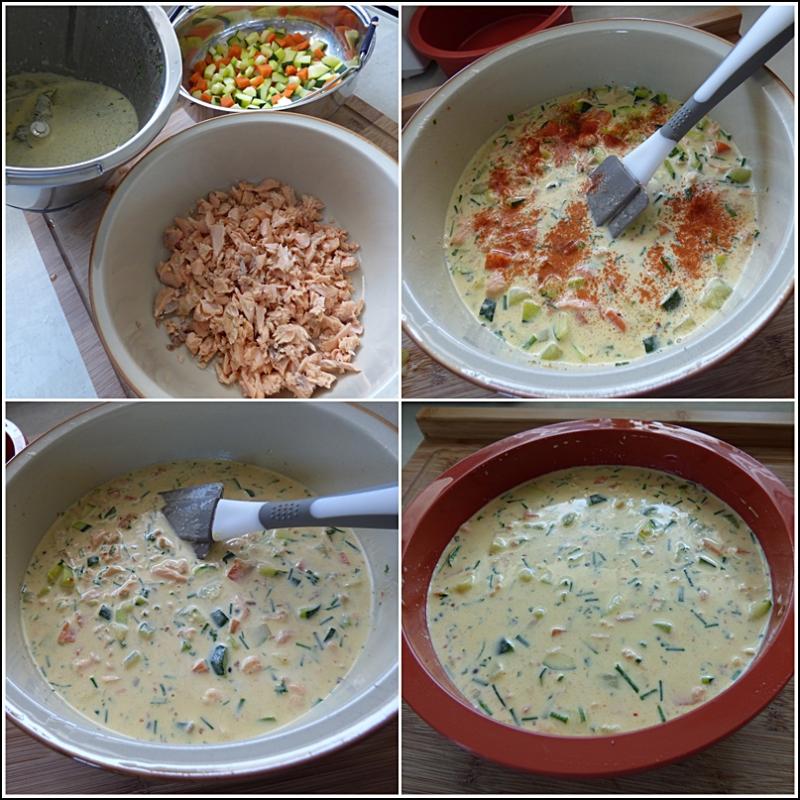 Une délicieuse terrine appréciée par ces chaleurs du moment! Elle peut être servie en entrée ou en plat principal accompagnée d'une salade verte ou de crudités, par exemple! Les ingrédients : - 1 boite de thon nature - 5 bonnes cuillères à soupe de crème fraîche - 10 bâtonnets de surimi - 1 ou 2 carottes râpées - 1 tomate - 3 oeufs - paprika - ciboulette - sel et poivre du moulin. La recette : 1 - Couper le surimi et la tomate en petits morceaux. Egoutter le thon. Couper la ciboulette. Râper la carotte. 2 - Dans un saladier, écraser le thon à la fourchette. Ajouter la crème et les oeufs un à un et bien mélanger entre chaque oeuf ajouté. 3 - Ajouter le surimi, les tomates coupées, la carotte râpée, la ciboulette ciselée. Parsemer de paprika. Saler et poivrer. Goûter et rectifier l'assaisonnement si nécessaire. 4 - Verser la préparation dans un moule adapté au Cookéo. Le recouvrir de film étirable. 5 - Pour la cuisson : mettre 300ml d'eau dans la cuve. Mon astuce : enlever les anses et les pieds au panier de cuisson et le retourner dans la cuve. Poser le moule sur le panier retourné. Ainsi, c'est beaucoup plus facile pour retirer le moule du Cookéo!   6 - Programmer "Cuisson sous pression" pendant 32 minutes. A la fin de la cuisson, ouvrir le couvercle et laisser la terrine refroidir un bon quart d'heure. 7 - Mettre au frais quelques heures. Le top est de la préparer le matin pour le soir ou bien la veille pour le lendemain! 8 - Accompagner cette terrine d'une sauce bulgare dont la recette est ICI.  Parfait pour notre repas d'hier soir! Pour d'autres recettes réalisées au Cookéo, suivez ce LIEN.   |