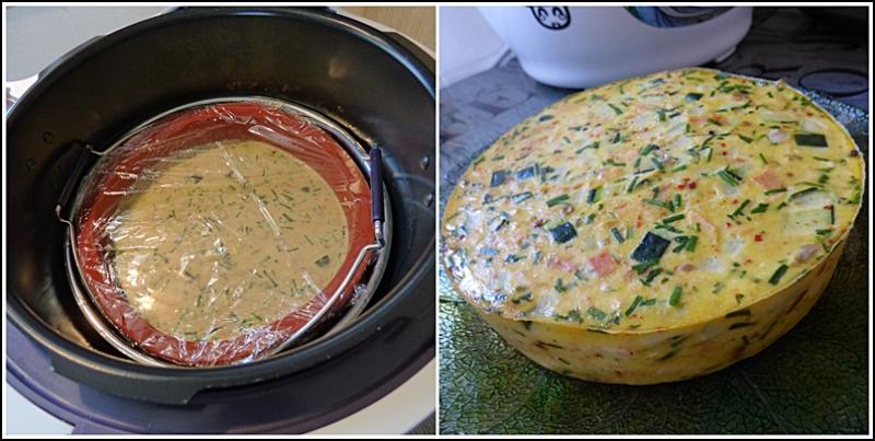 | Nous avions mangé du poulet et avec les bons restes grattés sur la carcasse, j'ai préparé une quiche sans pâte. J'ai utilisé des légumes que j'avais au congélateur (poivrons, champignons et poireaux. Les ingrédients : - des restes de blancs de poulet - poivrons, champignons et poireaux congelés - 3 oeufs - 1 échalote - huile d'olive - 30g de Maïzena - 200ml de crème liquide ou de lait de cuisine Gloria - gruyère râpé - sel et poivre - curry si on aime.   La recette : 1 - Préparation de l'appareil que j'ai réalisé au Thermomix. Mettre la Maïzena, la crème, les oeufs, le sel, le poivre et le curry dans le bol. Mixer 1 minute, vitesse 4.   2 - Dans une sauteuse, verser un peu d'huile d'olive et faire revenir l'échalote émincée. Puis ajouter, les poivrons, les champignons et les poireaux ou d'autres légumes. Comme mes légumes étaient congelés, j'ai attendu que toute l'eau rendue par les légumes se soit évaporée. Saler et poivrer. 3 - Ajouter le blanc de poulet coupé en morceaux. Bien mélanger le tout.   4 - Verser le tout dans le plat du Cake Factory. Parsemer de gruyère râpé.    5 - Lancer la cuisson P6 "Manuel" à 240° pendant 30 minutes.    6 - Découper la quiche sans pâte et l'accompagner de quelques feuilles de mâche.   Pour d'autres recettes réalisées au Cake Factory, suivez ce LIEN.   |